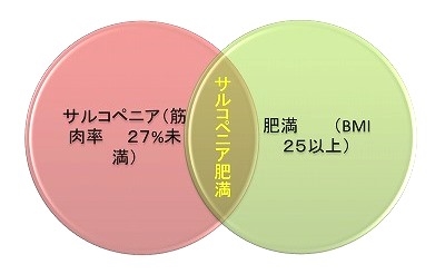 サルコペニア肥満は「筋肉減少(サルコペニア)+体脂肪増加(肥満)」の状態のことを言います。